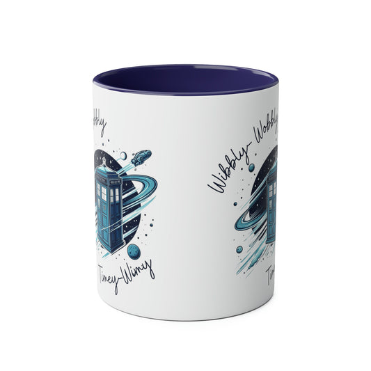 Who Dr Doctor inspirierte Geschenktasse, Wibbly Wobbly Timey Wimey Tardi Blue Police Box Time Machine, Fackelholz