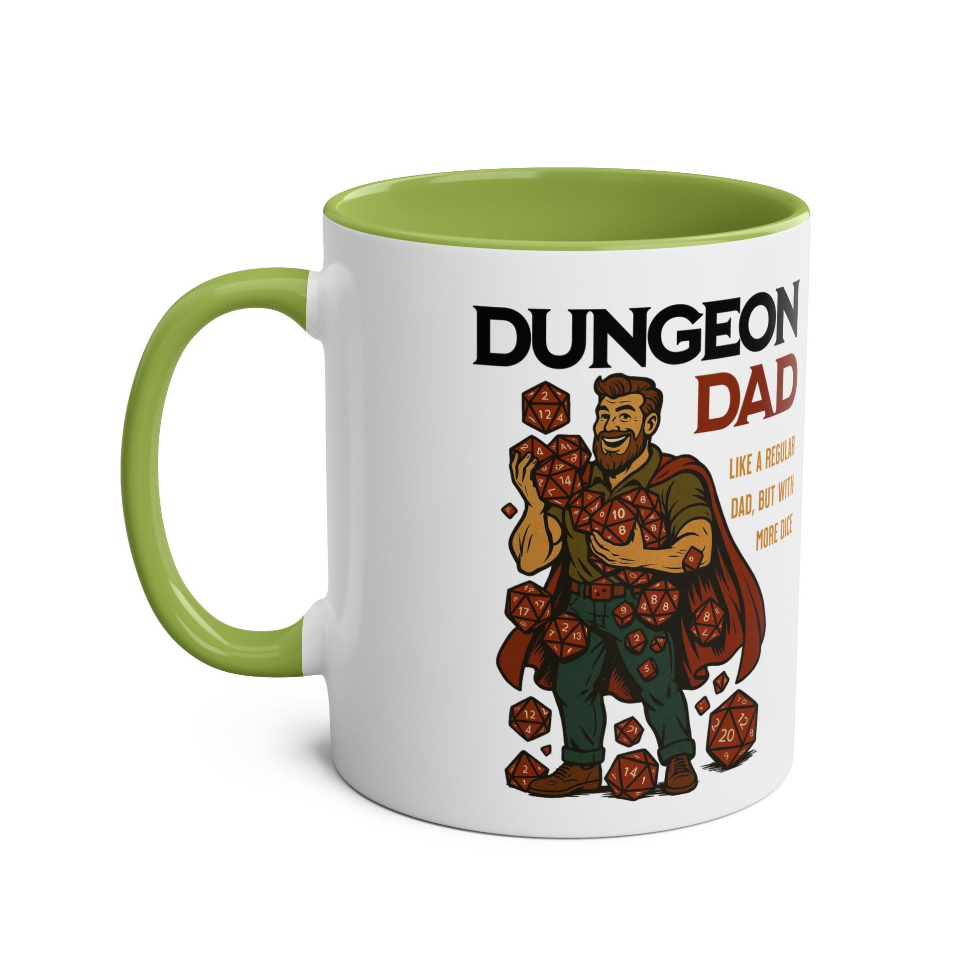 Featuring the witty phrase “Like a Regular Dad, But With More Dice,” this 11oz two-tone ceramic mug adds a playful, magical touch to any morning routine. Durable, practical, and full of character, it’s microwave and dishwasher safe—ideal for daily use at home or in the office.
