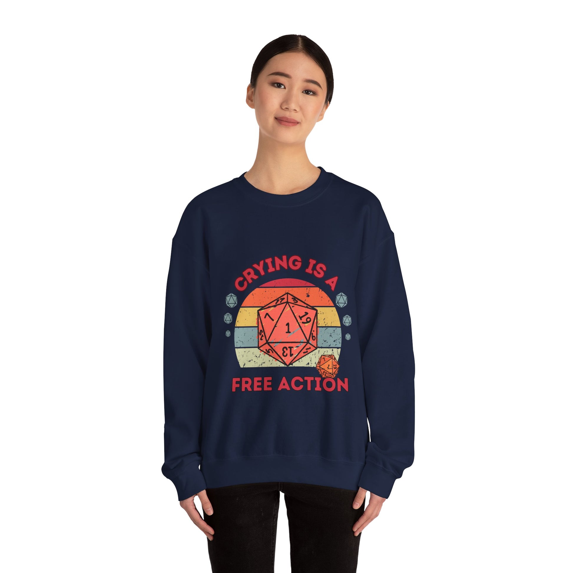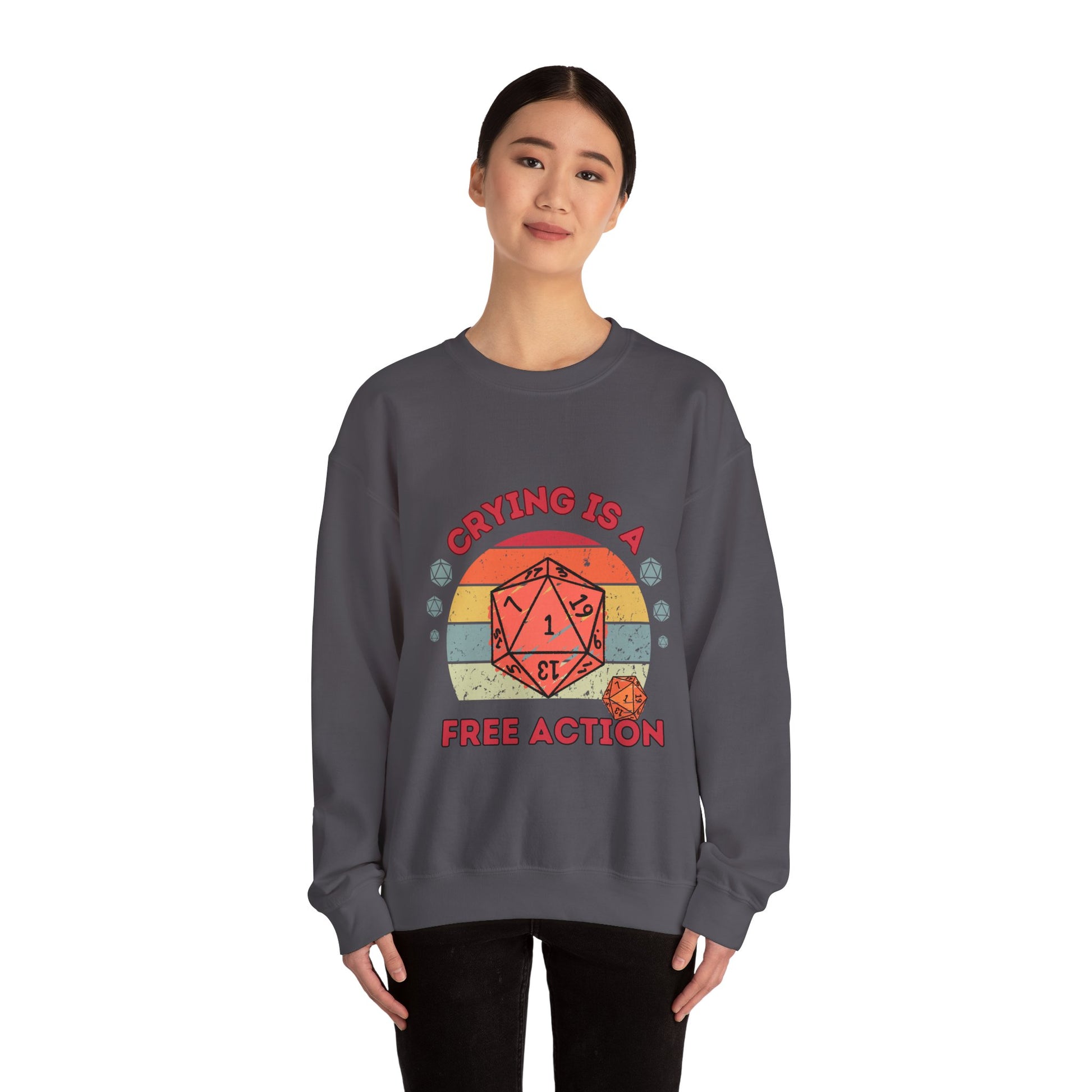 Discover the ultimate Dungeons and Dragons fan's must-have item with our Crying Is a Free Action Critical Fail Dnd, BG3 Sweatshirt Jumper.